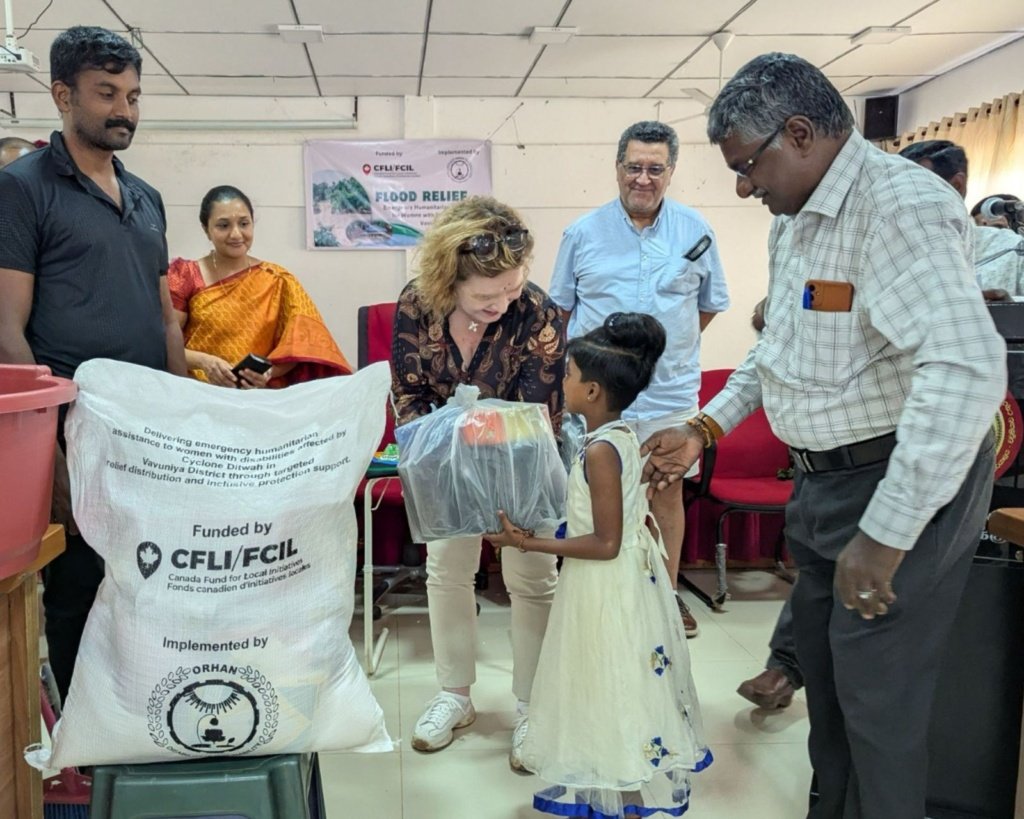 Vavuniya North, Sri Lanka – With the support of funding from the Canada Fund for Local Initiatives (CFLI), the Organisation for Rehabilitation of the Handicapped (ORHAN) organized a relief distribution programme for communities affected by the floods caused by the Dtwah cyclone in the Vavuniya North Divisional Secretariat area.